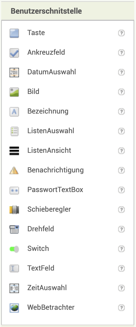 | 2. | Vergebt sinnvolle Namen für die Elemente und benennt Screen1 um. Passt den Platzhalter-Text der Bezeichnung an und entfernt den Platzhalter-Text für die Taste. |
