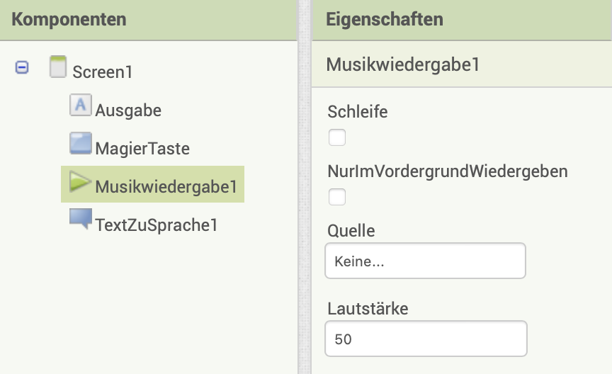 | 2. | Ladet den magic-Sound hoch und wählt diesen in der Eigenschaft Quelle aus. |