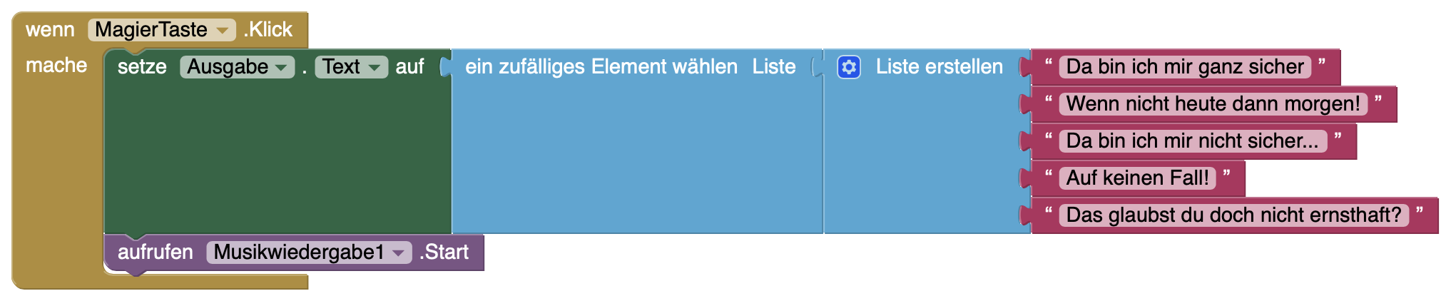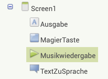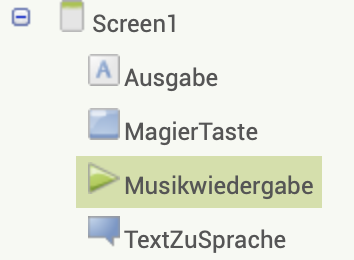 Zu verändernde Elemente: Musikwiedergabe → Spiele Magic-Sound, TextZuSprache → Spreche Antwort