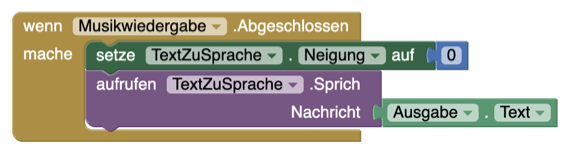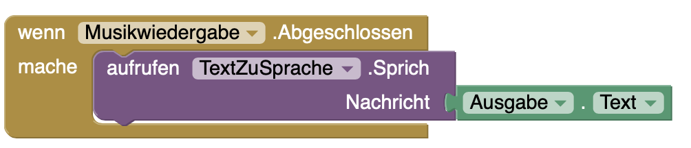 | 4. | Verknüpft das Abgeschlossen-Ereignis und den Sprich-Block. |
