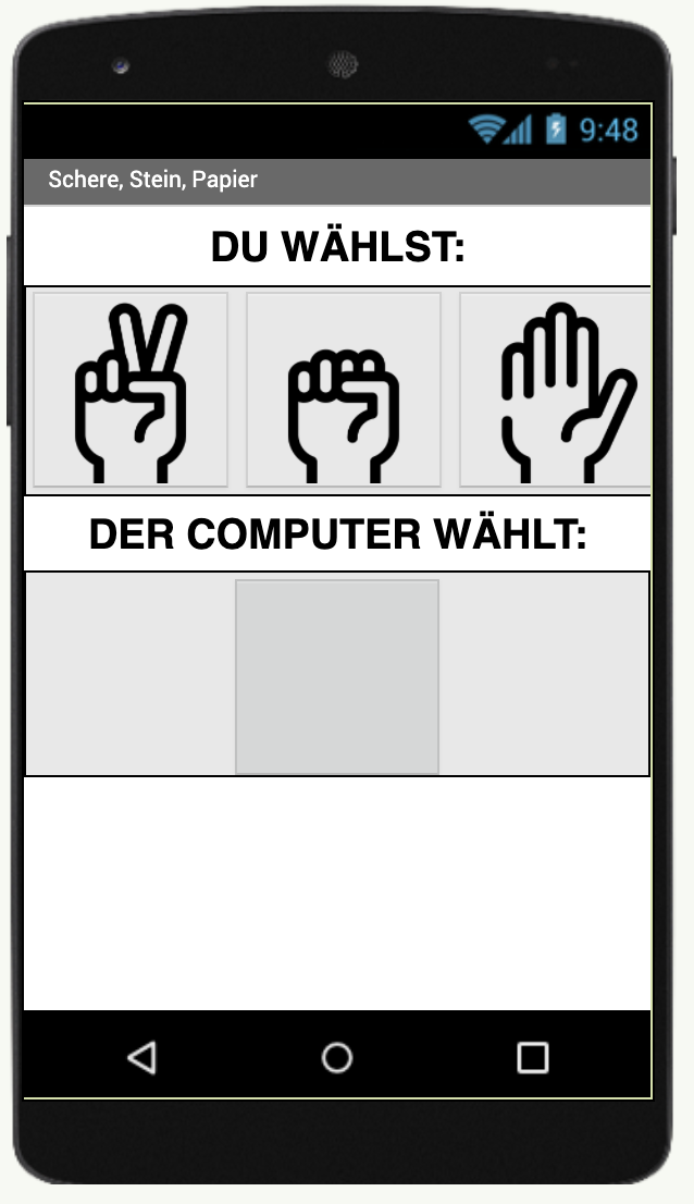 Hübscht die App auf und ergänzt Bilder mit den Handzeichen für Schere, Stein, Papier.