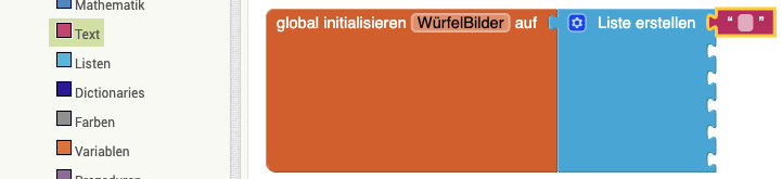 | 5. | Erstellt einen Text-Block mit dem Text "W1.png" und setzt ihn in die Liste. Achtet darauf, den Text richtig zu schreiben! | |