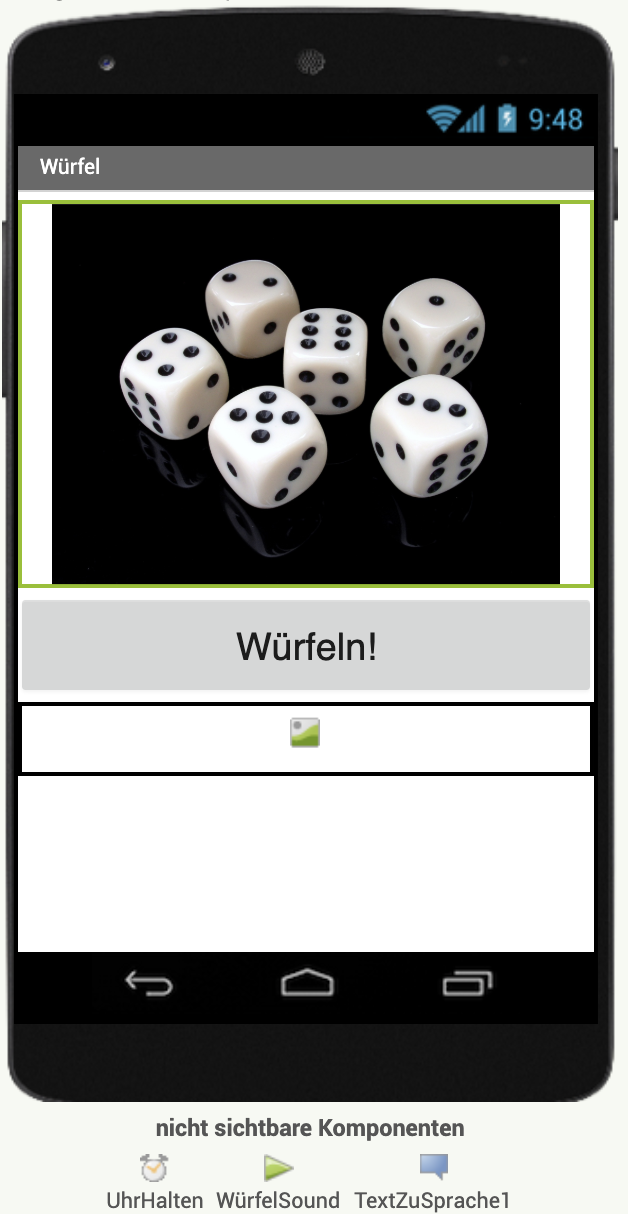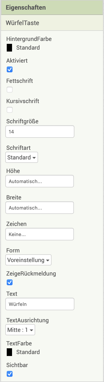 | 3. | Schaut euch in den Die Würfel-Taste und auch die Schrift könnten größer werden. Die Taste soll sofort ins Auge springen! |