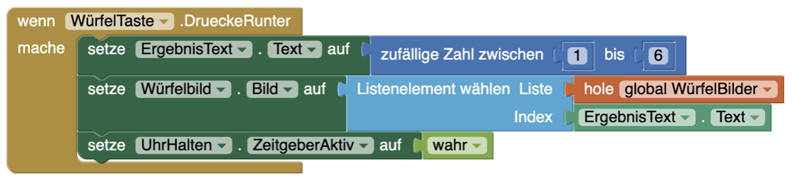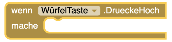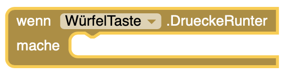 | 1. | Erstellt einen DrueckeRunter-Block für die Würfel-Taste |