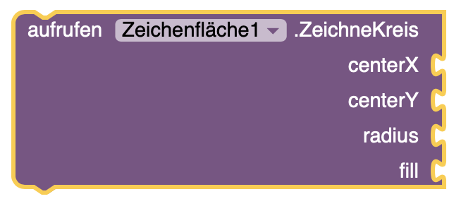 | 4. | Damit die ZeichneKreis-Funktion weiß, wo der Kreis auf der Zeichenfläche gezeichnet werden soll, müsst ihr die Koordinaten x und y aus dem Gedrueckt-Ereignis holen. |