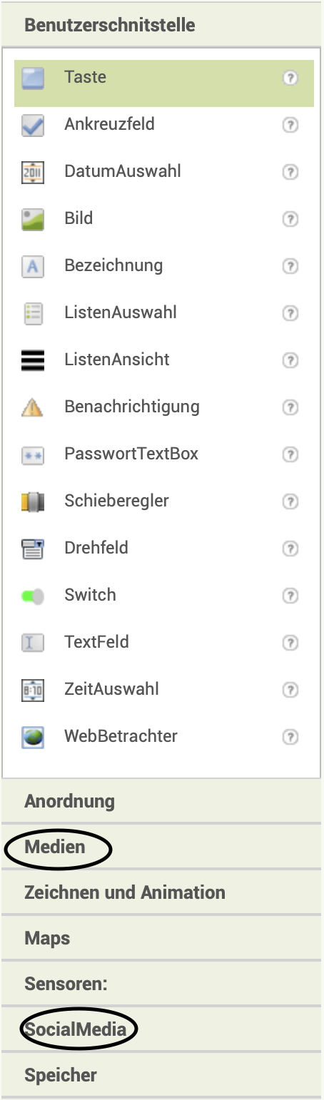 | 2. | Vergebt einen sinnvollen Text für die Taste und die BildAuswahl und sinnvolle Namen für die Elemente. |